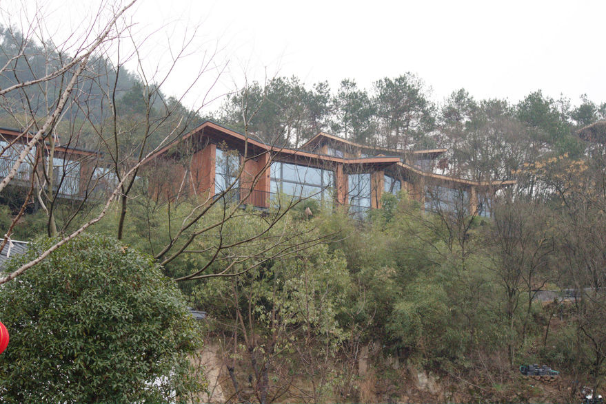 The Fuchun Kaiyuan Hotel, located in Wushitan, Jiande, Hangzhou, is a beautiful country resort hotel surrounded by mountains and streams. The site of the hotel is in the shape of a triangle, with a central lake formed by a mountain stream. The buildings are scattered organically around the lake and on the surrounding hillsides.